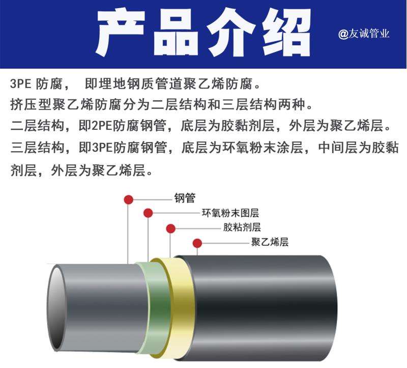 3PE防腐鋼管是指3層布局聚烯烴涂層(MAPEC)外防腐鋼管,是國(guó)內(nèi)常用的一種防腐管道。也即是在鋼制管道外邊進(jìn)行3PE防腐。涂敷過程中,三種防腐涂料應(yīng)按照管道的運(yùn)行溫度和涂敷作業(yè)設(shè)備選擇所組成的結(jié)構(gòu)。3PE防腐鋼管一般就是所說的3PE防腐鋼管,指的就是經(jīng)過防腐工藝加工處理,可以有效地防止或減緩在運(yùn)輸與使用過程中發(fā)生化學(xué)或電化學(xué)反應(yīng)發(fā)生腐蝕現(xiàn)象的鋼制管道,聚乙烯3PE防腐鋼管廠家,如今3PE防腐鋼管發(fā)展成了更多的產(chǎn)品,目前是常用的一種3PE防腐鋼管(三層聚乙烯)工藝就是上世紀(jì)90年代后期從國(guó)外引進(jìn)的先進(jìn)的防腐技術(shù),3PE防腐技術(shù)綜合了環(huán)氧涂層與擠壓聚乙烯兩種防腐層的優(yōu)良性能,將環(huán)氧涂層的界面特性和耐化學(xué)特性與擠壓聚乙烯防腐層的機(jī)械保護(hù)特性等優(yōu)點(diǎn)結(jié)合起來,從而顯著的改善了各自的性能,這種鋼管的特點(diǎn)就是機(jī)械強(qiáng)度高、耐磨損、耐腐蝕、耐熱、耐冷可用于150度截止中,直縫3PE防腐鋼管做到以質(zhì)取勝,在寒冷地帶也適應(yīng).