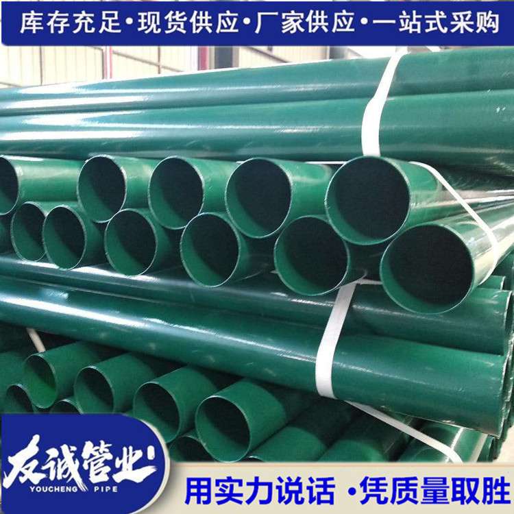DN150高壓電纜熱浸塑電纜穿線保護管適用于-30℃到120℃的作業(yè)環(huán)境,與其他金屬管、塑料管、復(fù)合管相比,它歸納了各種管道的特色,既有鋼管的強度,又有塑料管的耐腐蝕、耐磨損,流體阻力小等特色,是一種安全衛(wèi)生強度高,粘結(jié)強度好的綠色管道。友誠牌涂塑鋼管廣泛用于高層建